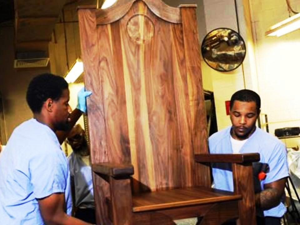 Một khi hoàn tất, chiếc ghế sẽ được đưa sang bọc nệm tại một cơ sở của Trại Cải Huấn Curran-Fromhold ở gần đó.