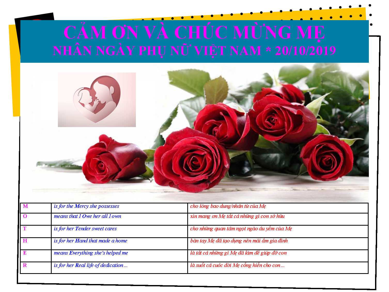 - Ngày Phụ Nữ: Xin cảm ơn và chúc mừng Mẹ (24/10/2019)