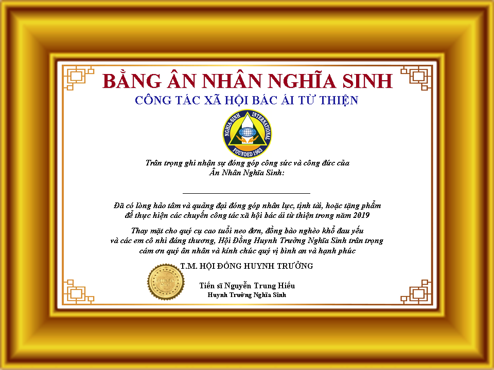 - Bằng Ân Nhân Nghĩa Sinh 2019-2020 (07/11/2019)