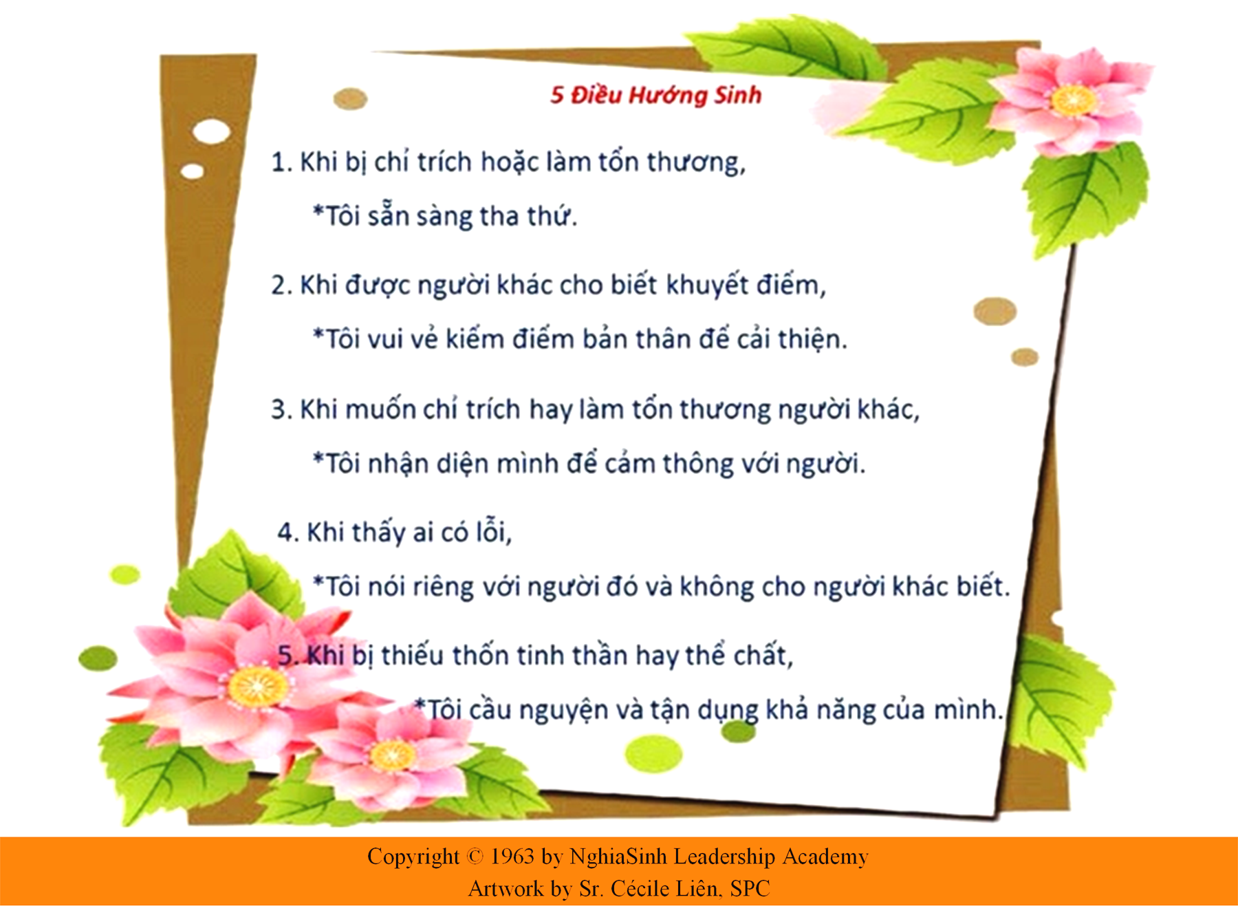 - 3. NĂM ĐIỀU HƯỚNG SINH NGHĨA SINH * Huynh Trưởng Nghĩa Sinh (10/10/2024)