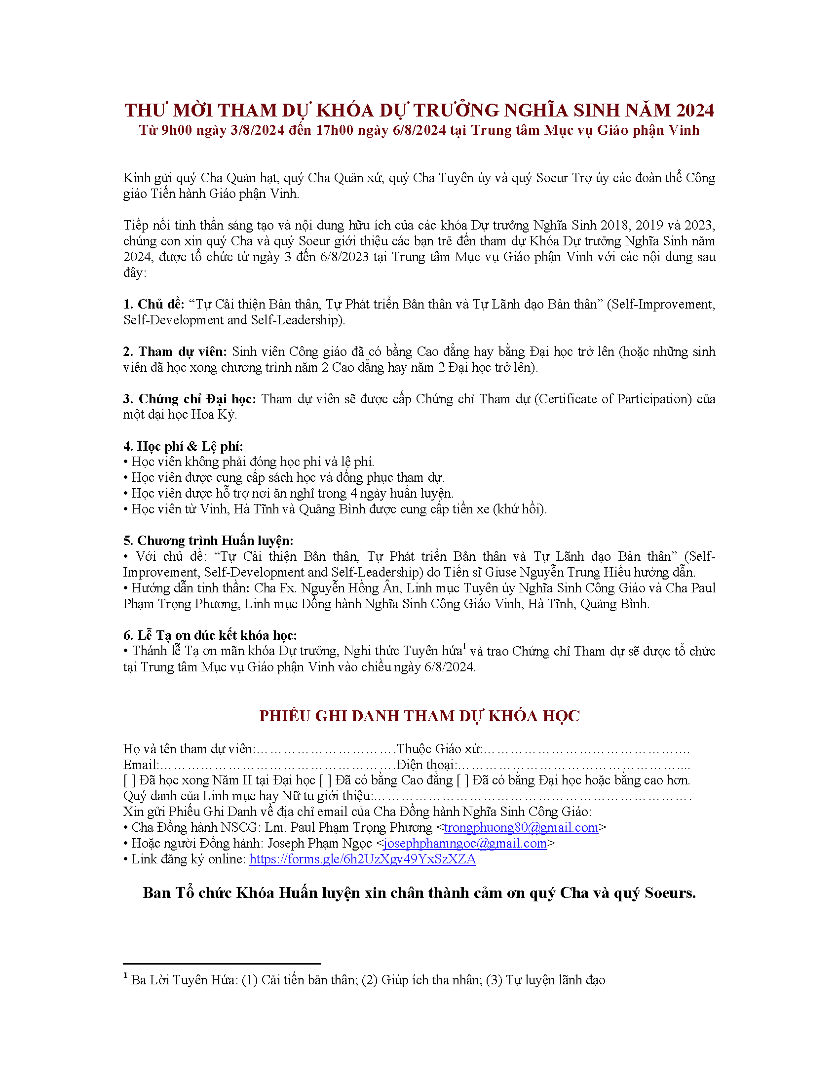 - Thư mời tham dự Khóa Dự trưởng Nghĩa Sinh năm 2024 * Huynh Trưởng Nghĩa Sinh (25/07/2024)