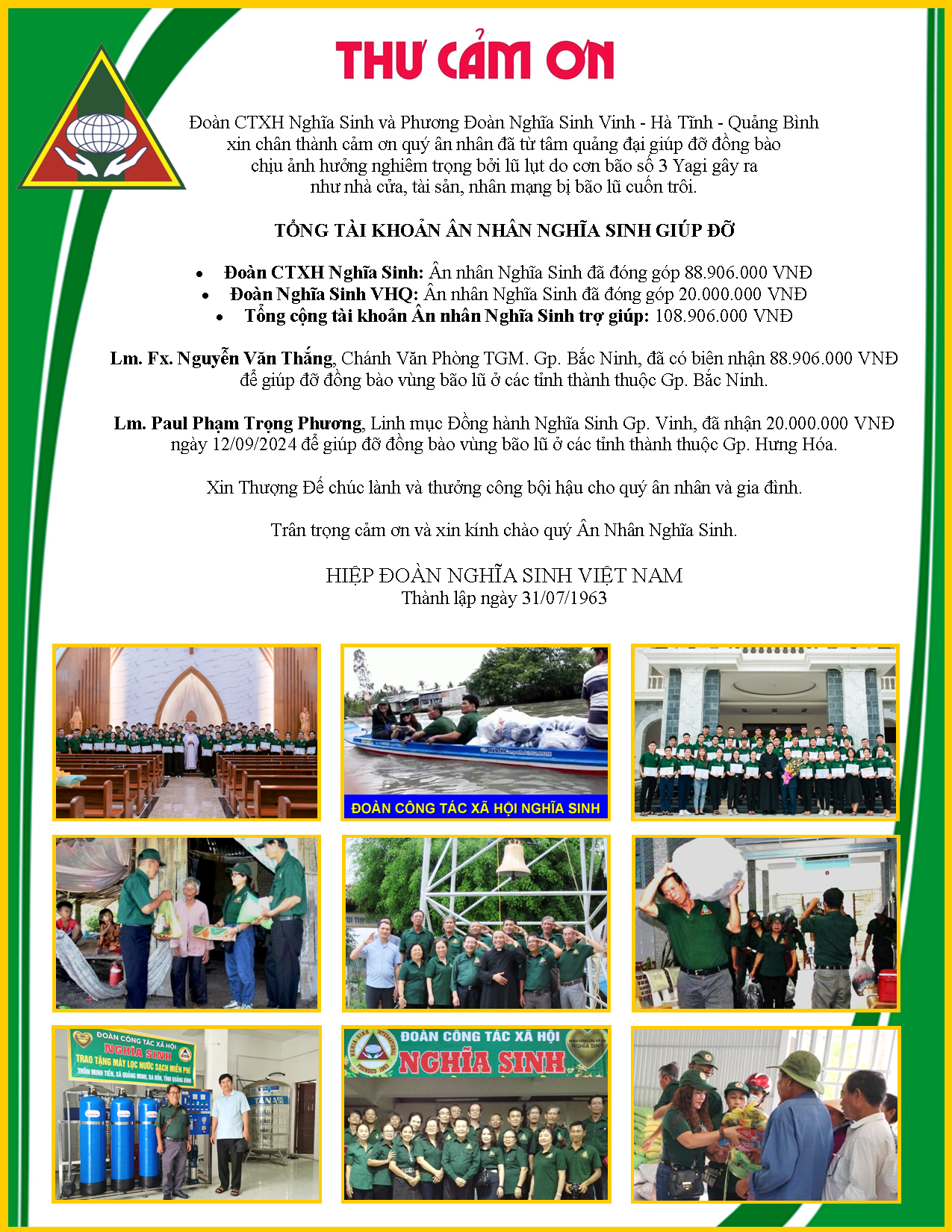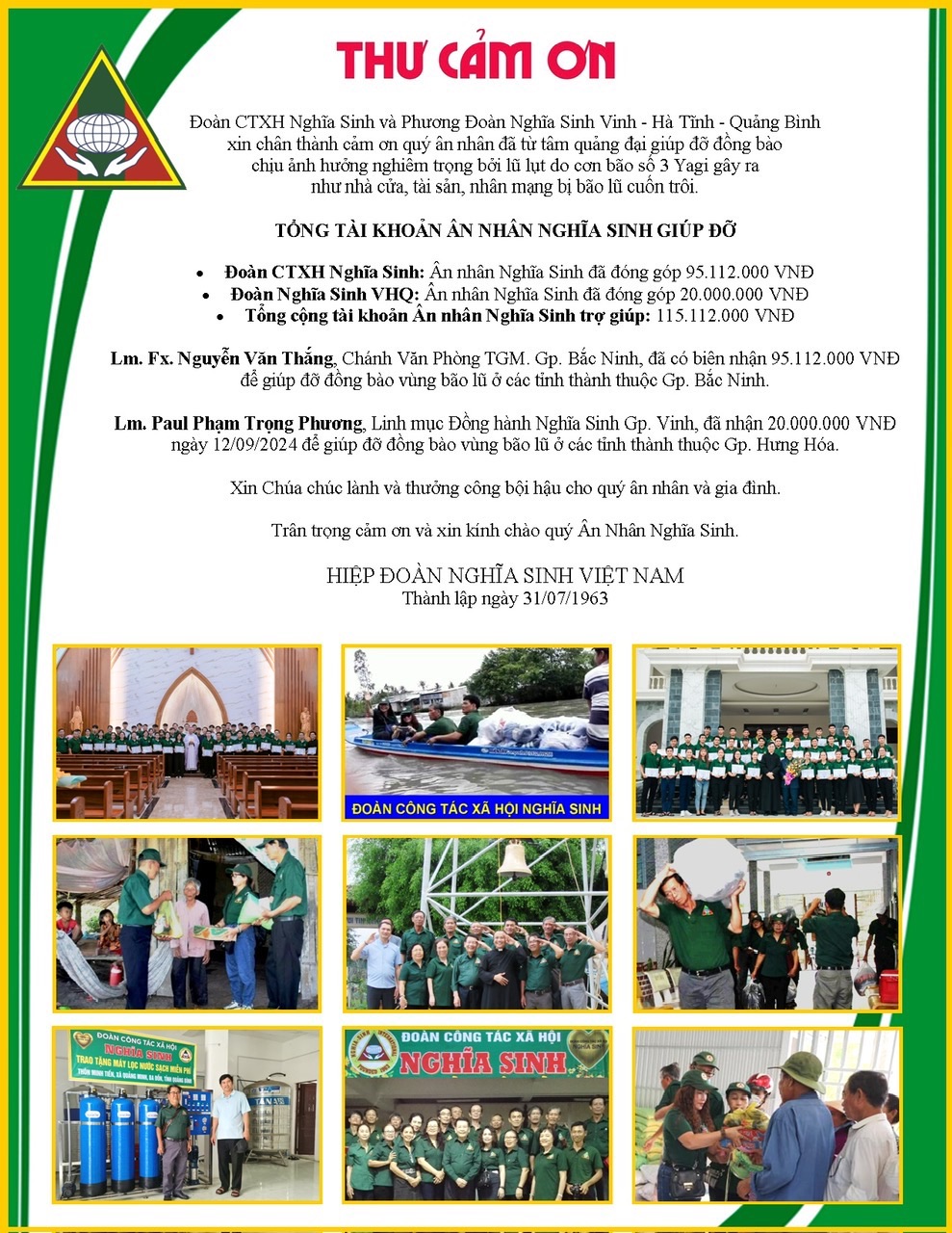 - Đoàn CTXH Nghĩa Sinh và PĐ Nghĩa Sinh VHQ giúp nạn nhân bão lũ Yagi 3 * Huynh Trưởng Nghĩa Sinh (25/09/2024)