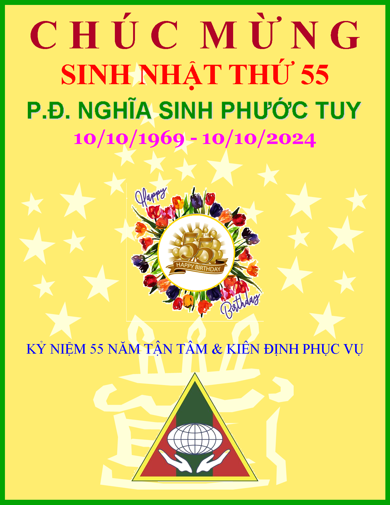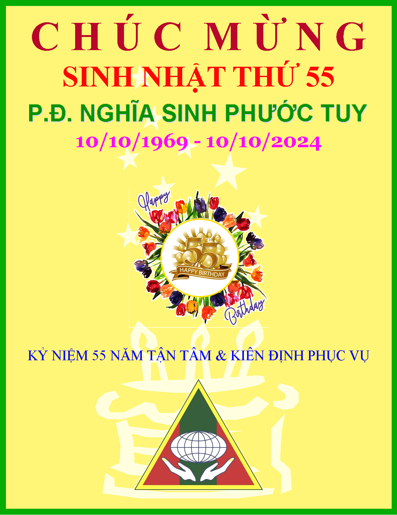 - CHÚC MỪNG SINH NHẬT NSPT: 55 NĂM PHỤC VỤ TẬN TÂM & KIÊN ĐỊNH * Huynh Trưởng Nghĩa Sinh (01/10/2024)